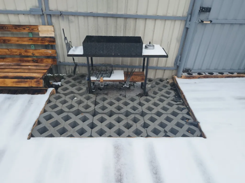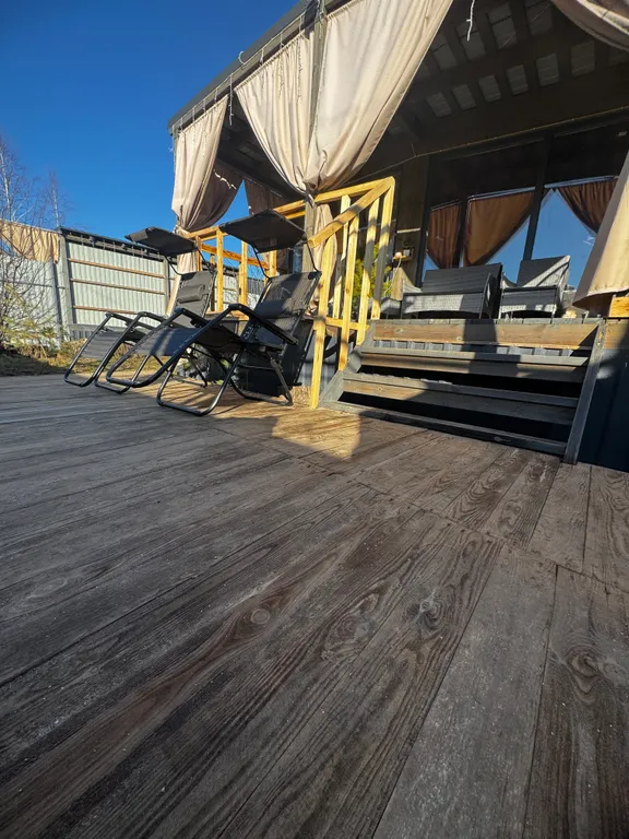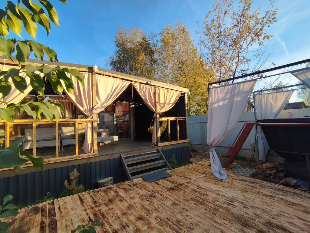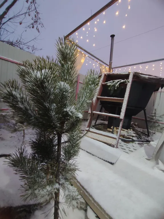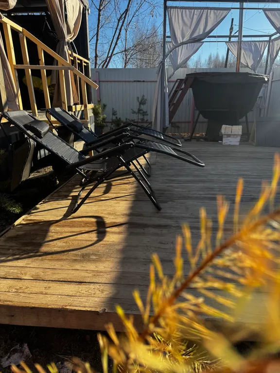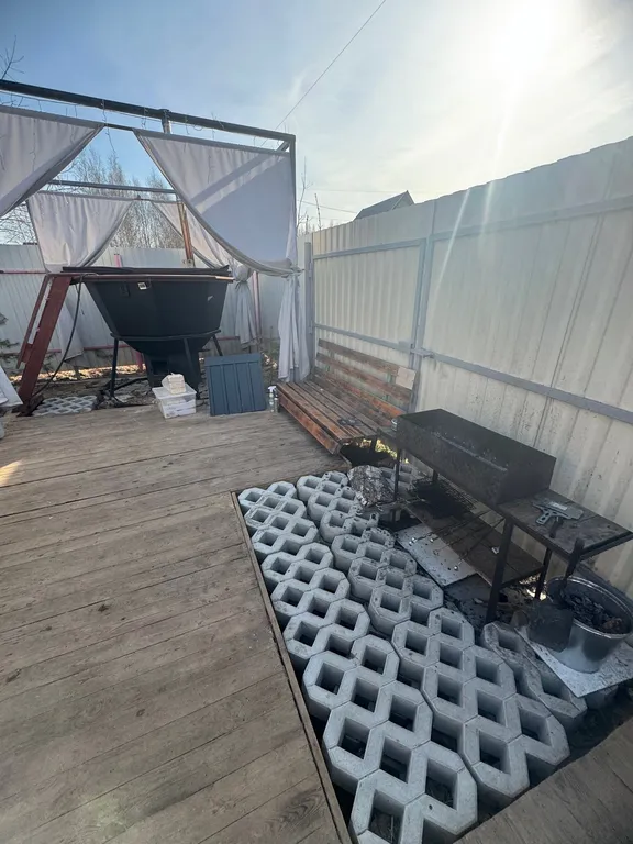 Приватная небольшая огороженая территория с банным чаном.