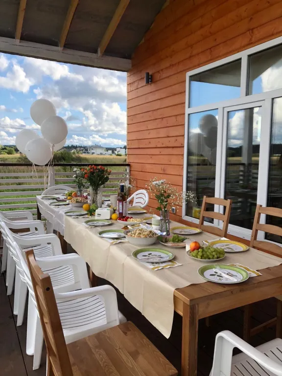 В доме кухня-холл 35м2 оборудована: газ. Плита, холодильник, чайник. Имеется вся необходимая посуда. Душевая, с/у, бойлер.