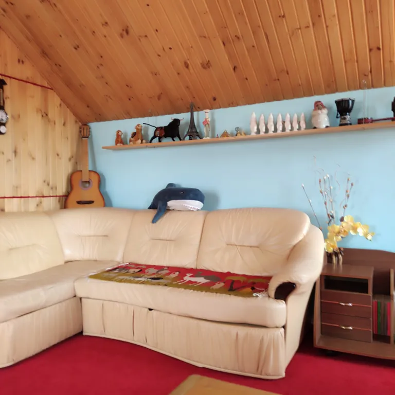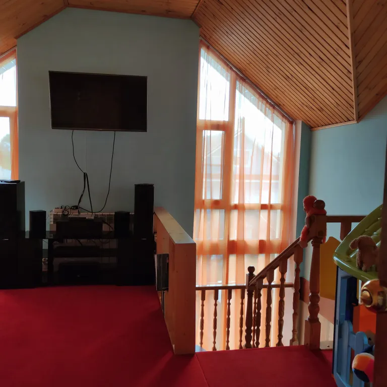 Б) большой холл с угловым раскладным диваном для 2 человек. детский уголок, аудио-видео-tv зона.