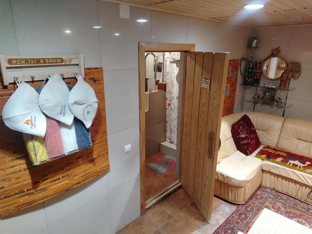 В) мини-банный комплекс — сауна на дровах, купель, душ, туалет, укомплектованная зона отдыха. Плата отдельная, заявка на посещение заранее.
