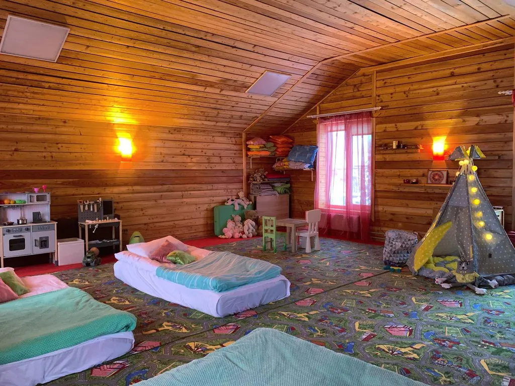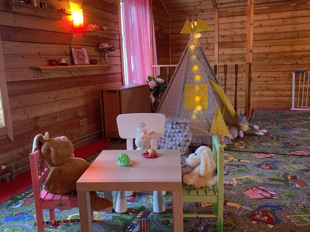 Для детей — безопасная игровая площадка на улице, бассейн, а на втором этаже оборудована большая игровая комната с разнообразными игрушками. Дети будут заняты с утра до вечера.