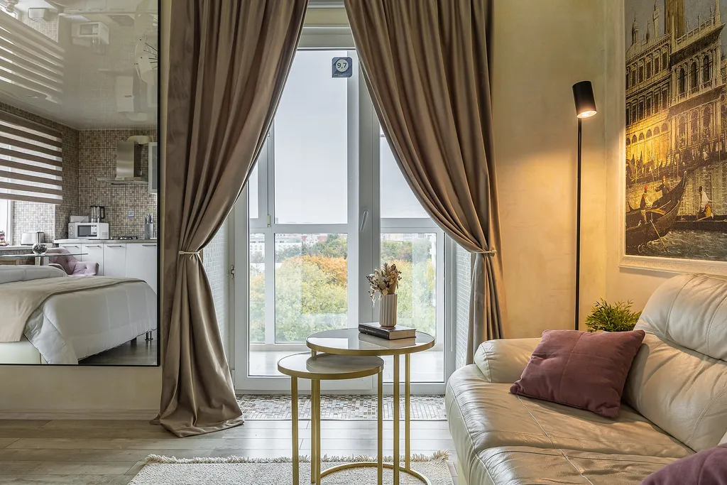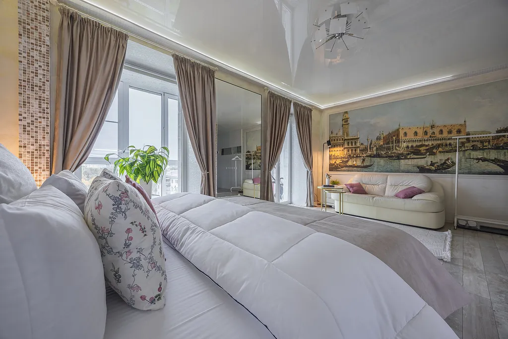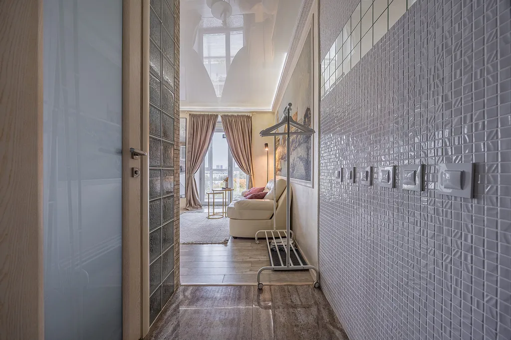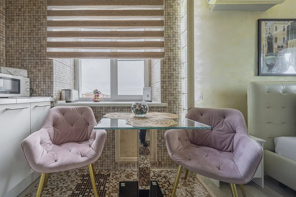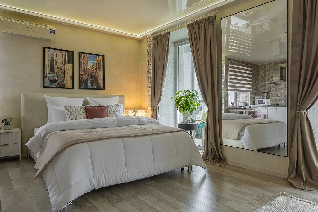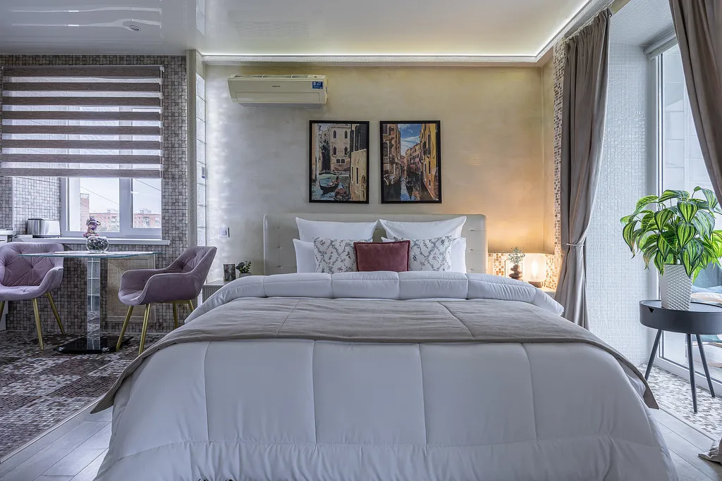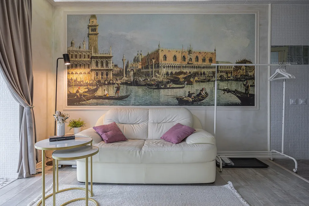 Уютная квартира-студия площадью 30 м² на 7 этаже античного дома. Идеально подходит для пары или друзей, семьи из 4 человек, командированных или туристов, приехавших небольшой компанией и желающих насладиться комфортом.