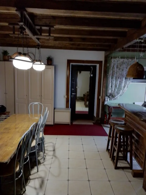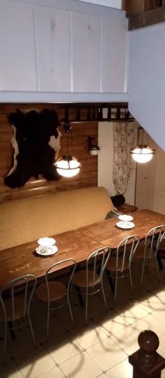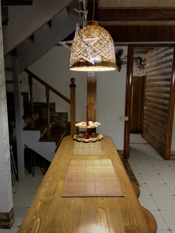 Общая гостиная зона отдыха с большим столом, диваном, tv смарт, музыкальная колонка, караоке. Для комфорта тёплый пол на всём этаже.