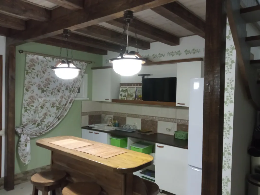 Кухня со всем необходимым есть вся посуда, микроволновка, плитка индукция, большой холодильник, чайник. Также моющие средства, мыло, бумага, полотенца, шампунь.