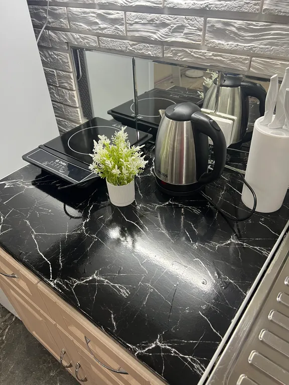 - Комфорт: предоставляются все необходимые удобства (холодильник, чайник, плита, микроволновая печь, мультиварка, утюг, полотенца, постельное бельё, тапочки, шампунь, мыло, средство для мытья посуды, тарелки, чашки, вилки, ложки, ножи, фен).