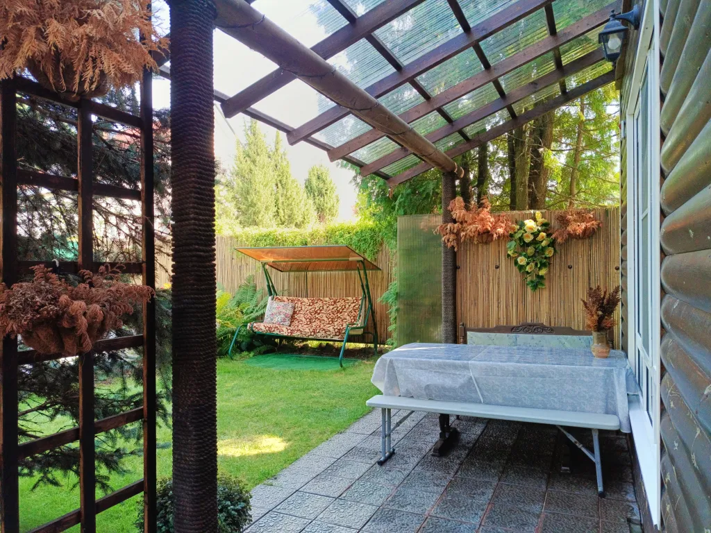 Дом имеет небольшую, приватную, огороженную территорию с парковкой на 2 автомобиля и мангальной зоной.