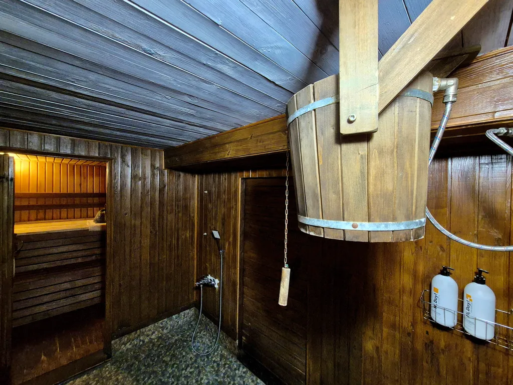 Сауна (электрическая) с влажным паром и дубовым веником (3 часа в сутки включены в стоимость, подготовка – 2 часа, после 23:00 пользоваться запрещено).