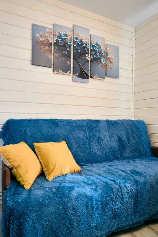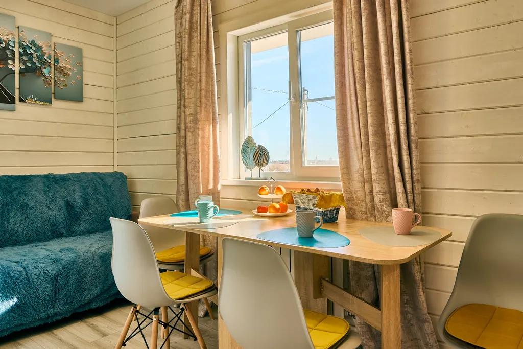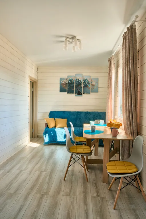 - Кухня-гостиная, где стоит двухместный раскладной диван,