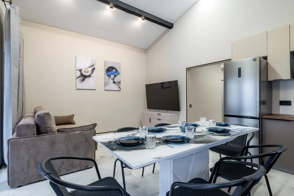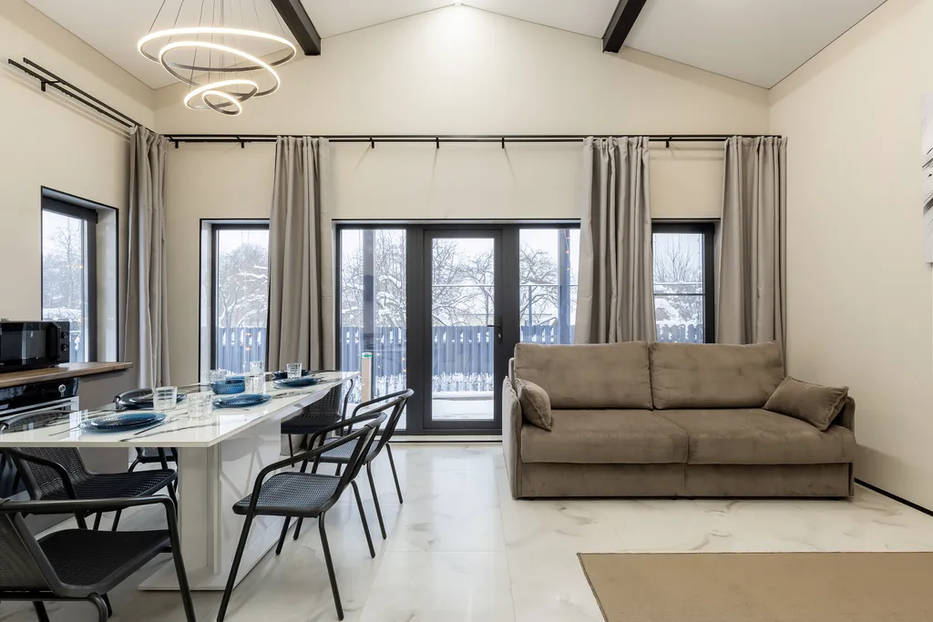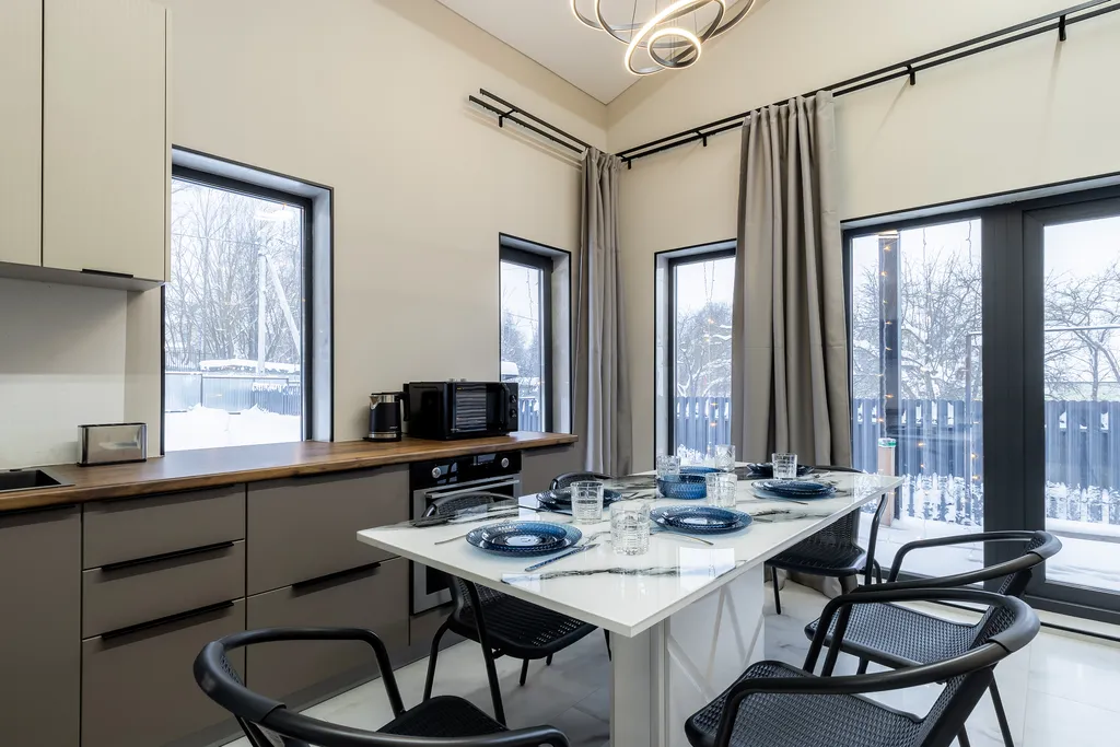 Есть всё необходимое для комфортного проживания: плита, в каждой комнате телевизор, холодильник, микроволновая печь, духовой шкаф, эл. Чайник, wi-fi, smart tv, постельное бельё, вся необходимая посуда, полотенца, мангал, шампура.