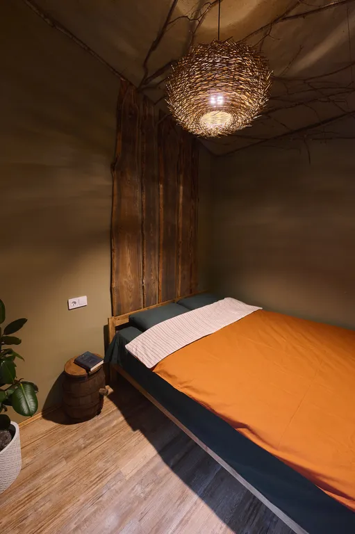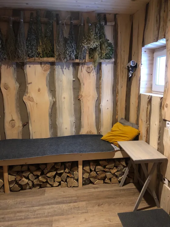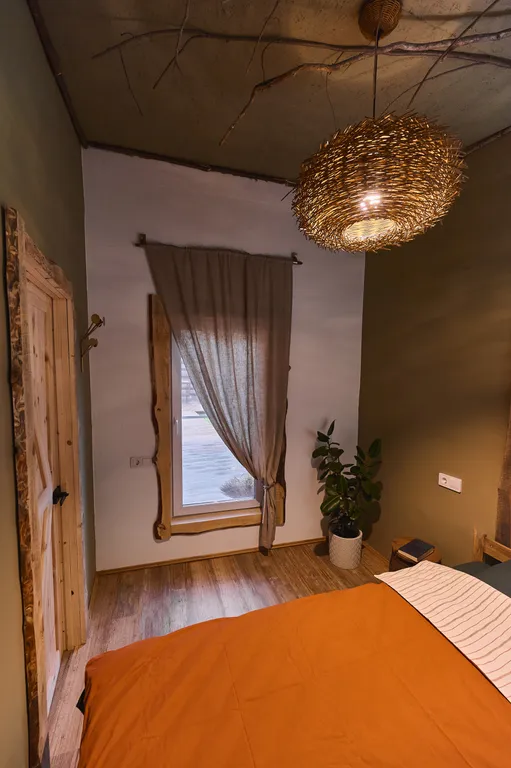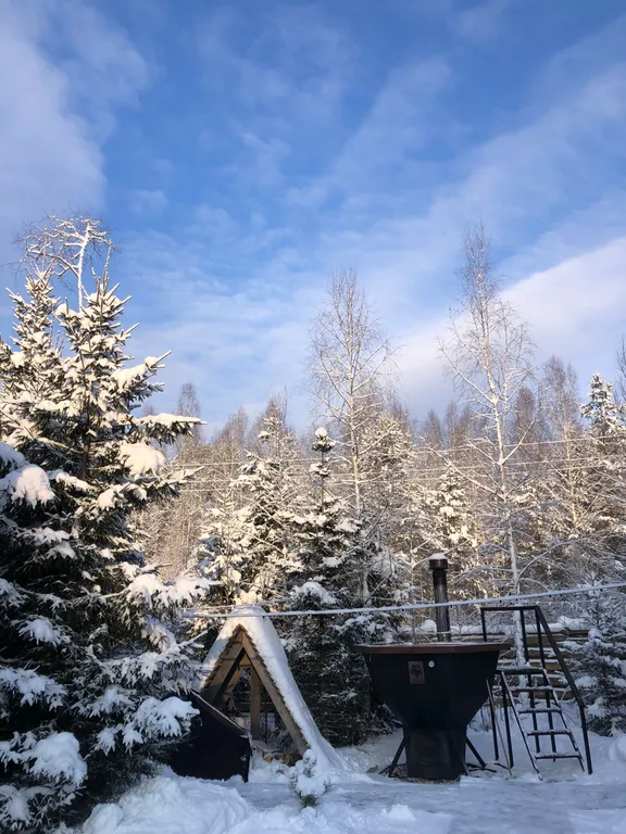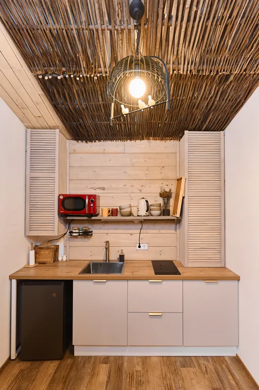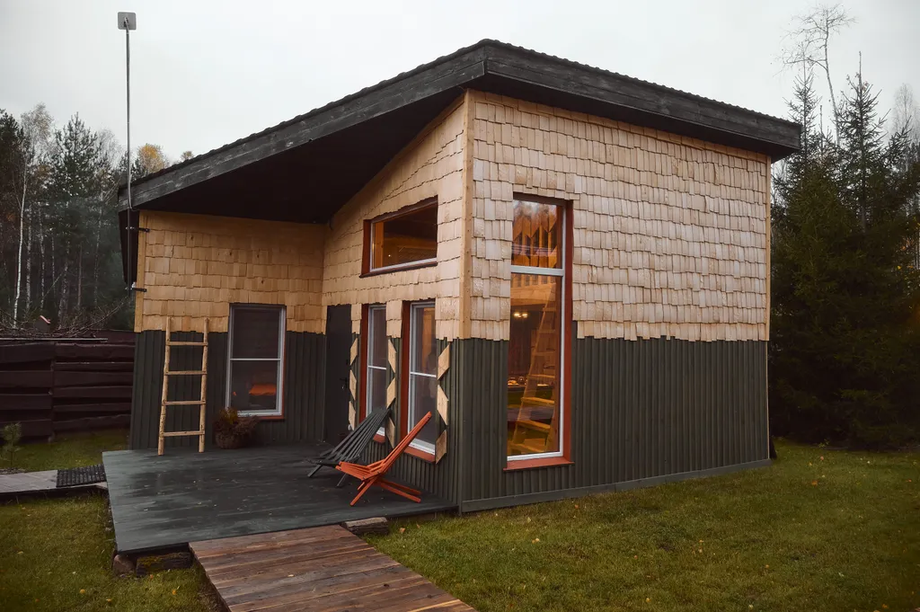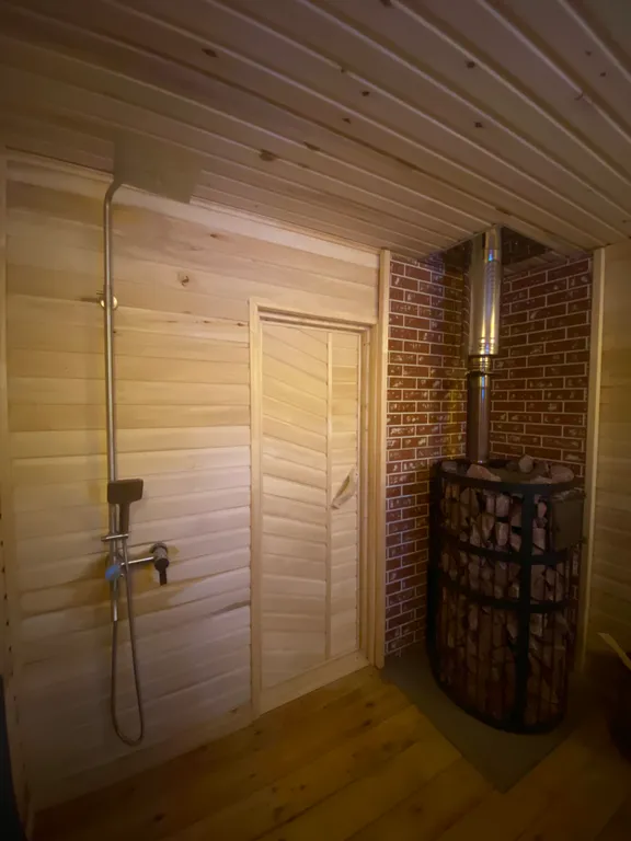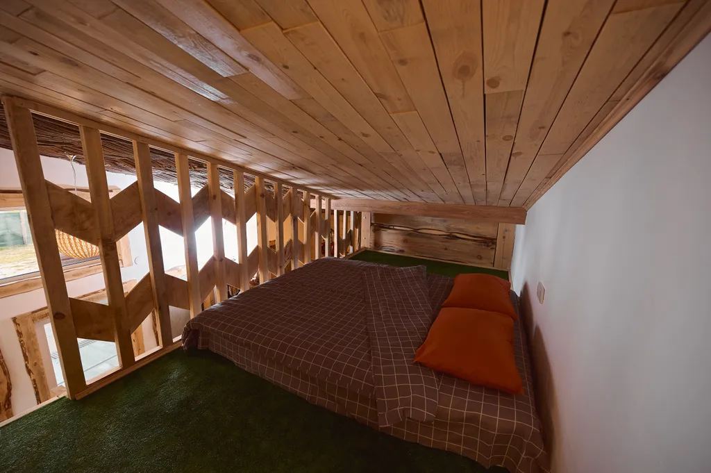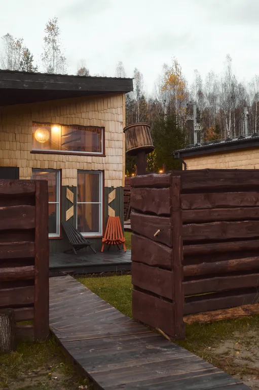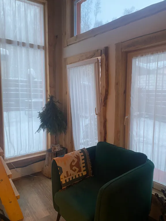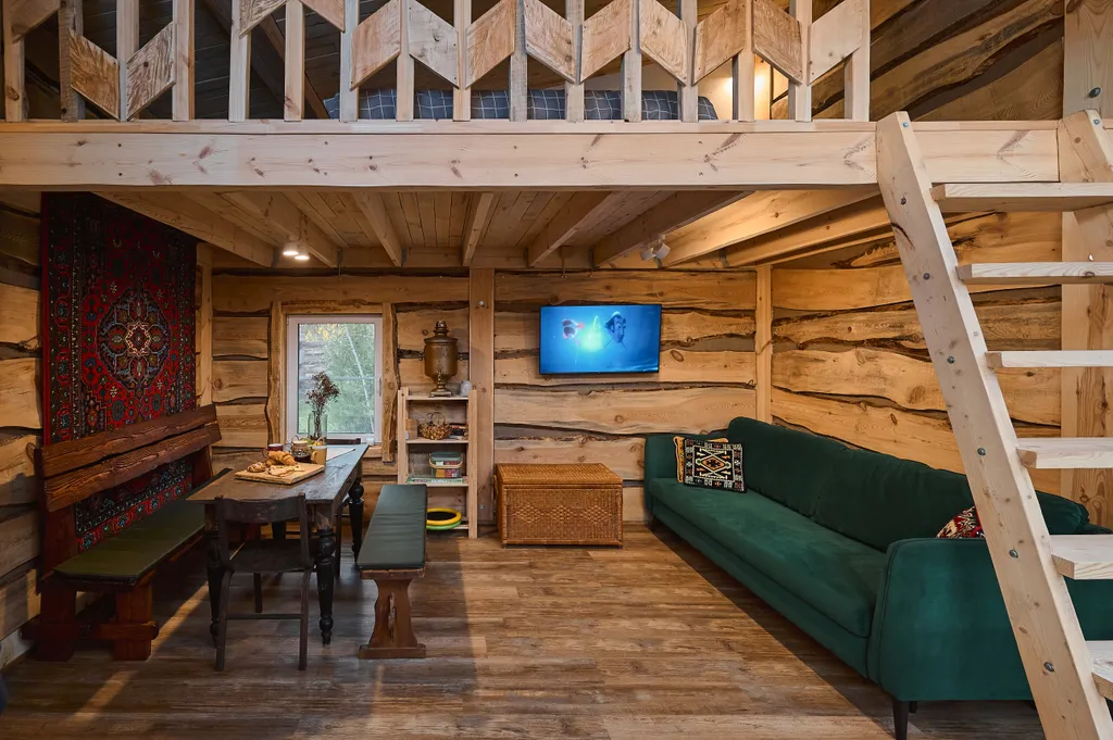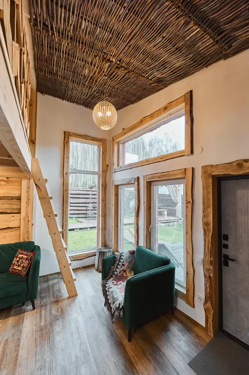 - Уютный дом, с оборудованной кухней гостиной и раскладным диваном, спальней с ортопедическим матрасом, и антресольным этажом со вторым светом. (вместимость до 6 гостей)