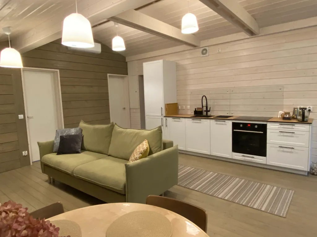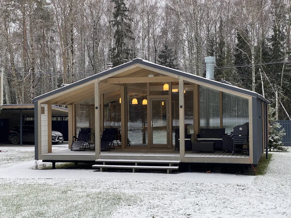 Площадь 103 кв м с просторной крытой верандой, жилая 80 м2. Максимальное количество гостей 6 человек.