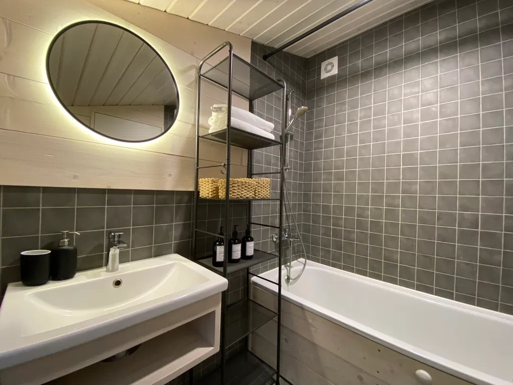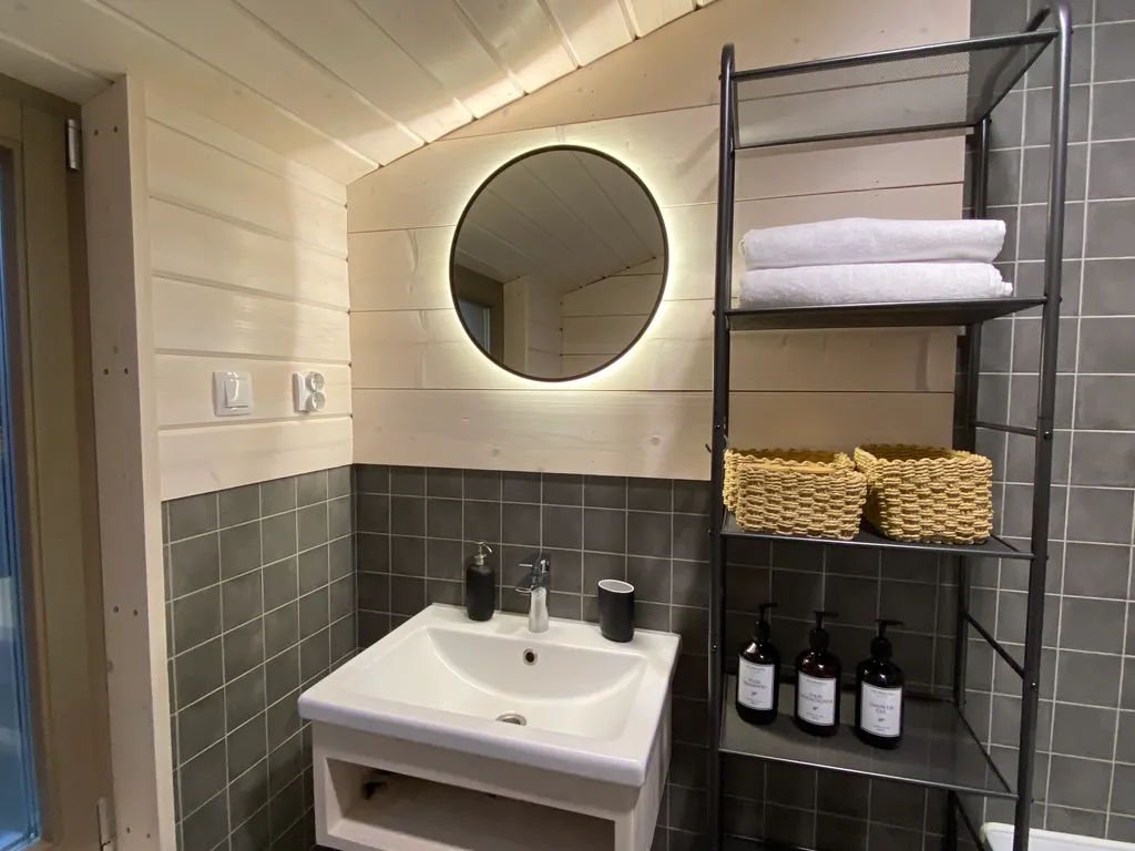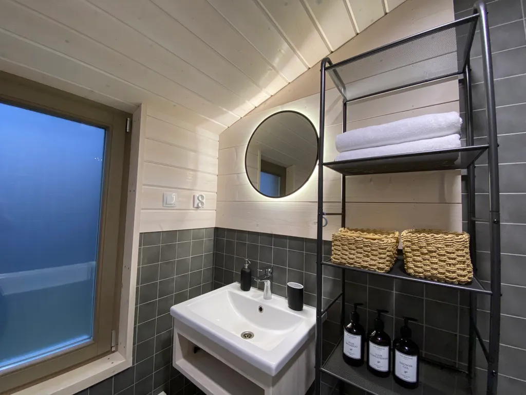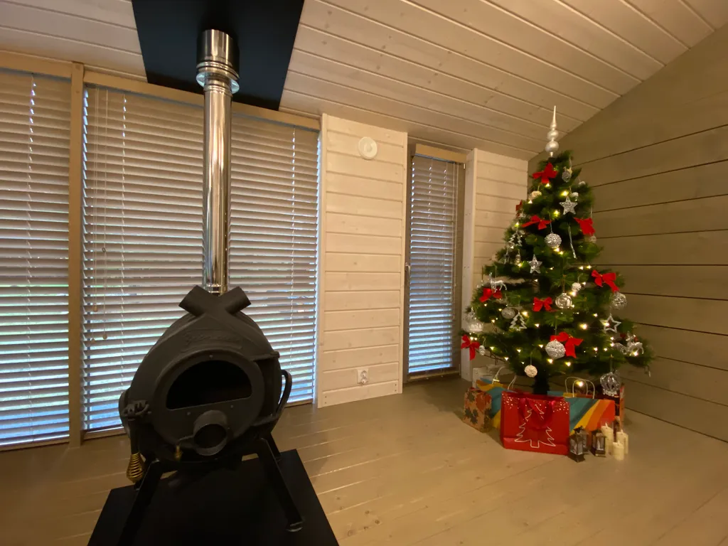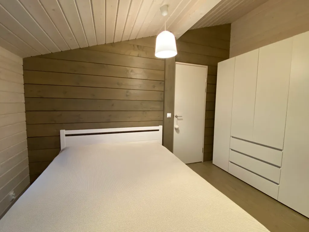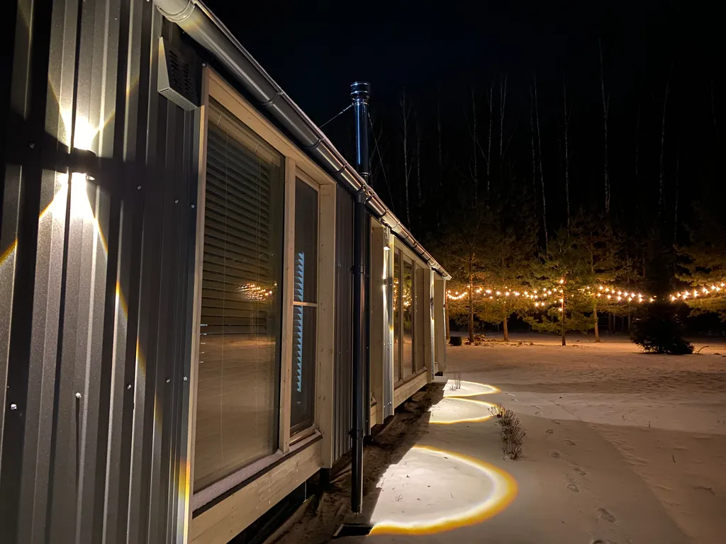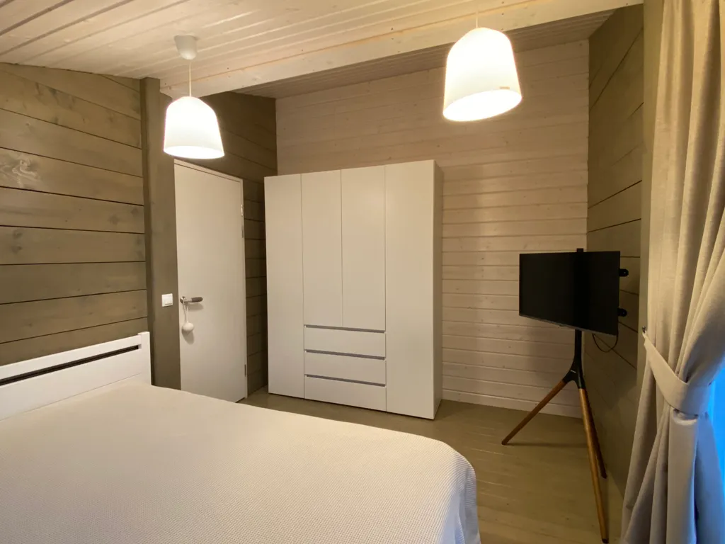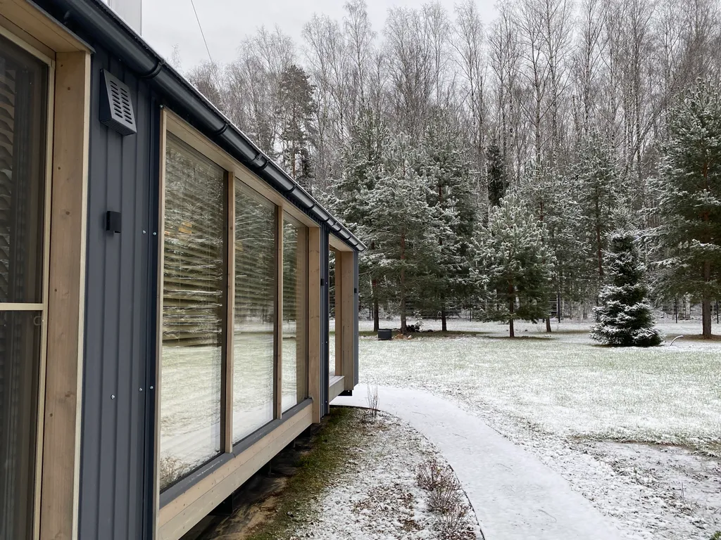 - Вторая спальня: двуспальный диван-кровать 160 см с панорамным окном с видом на лес.