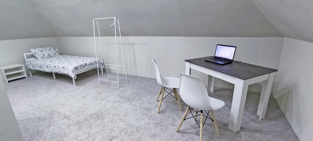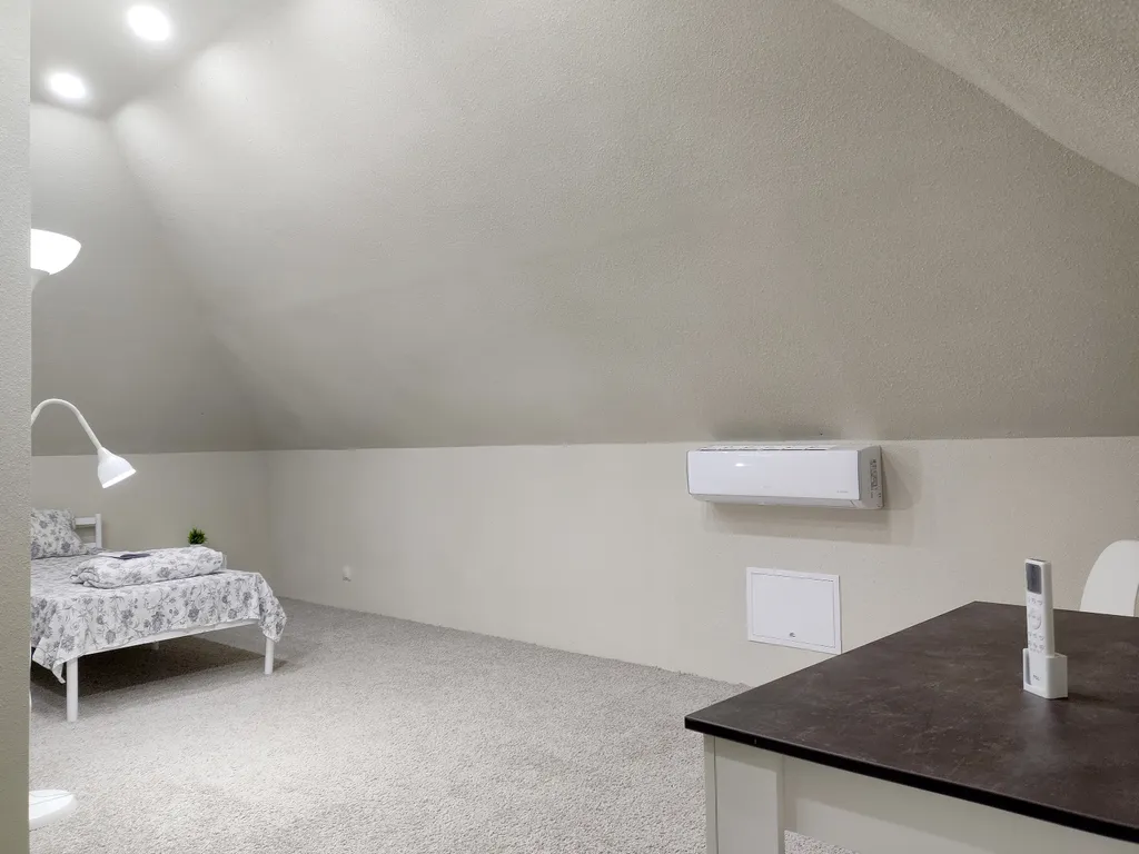- Две кровати на просторном втором этаже (можно объединить в одну, как в отеле).