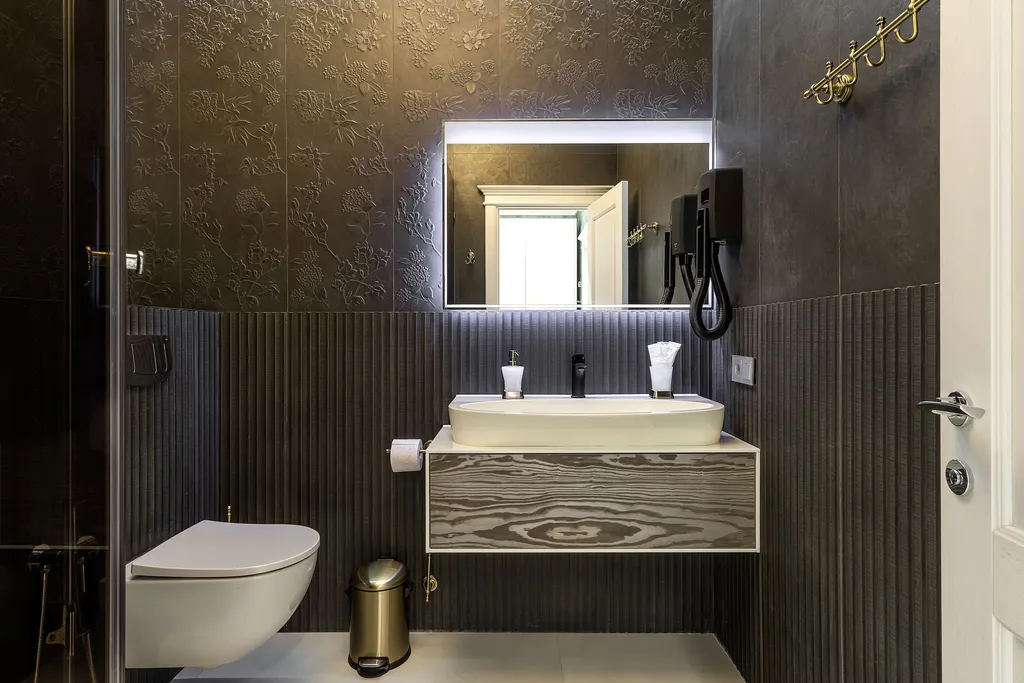 Санузел оборудован: ванна, стиральная машина, порошок, фен, набор полотенец, тапочки, косметические принадлежности, зубной набор.