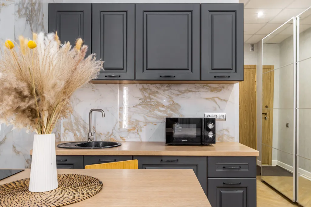 К Вашим услугам: чайный сет, сладкий комплимент, питьевая вода, средство для мытья посуды.