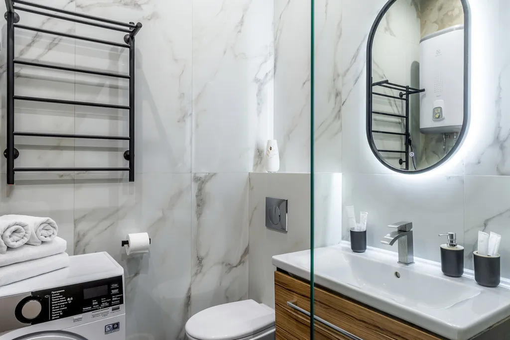 Санузел оборудован: душ, набор полотенец, тапочки, стиральная машина, косметические принадлежности, зубной набор, фен.