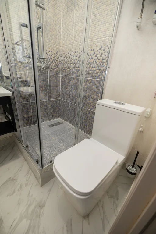 Отдельная ванная комната с душем, раковиной и унитазом;