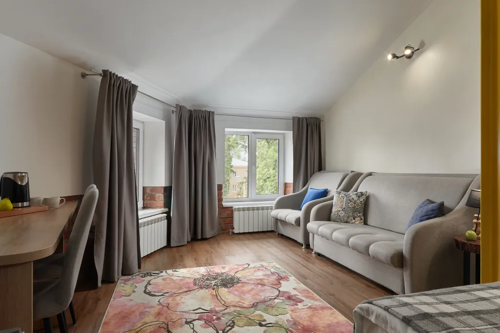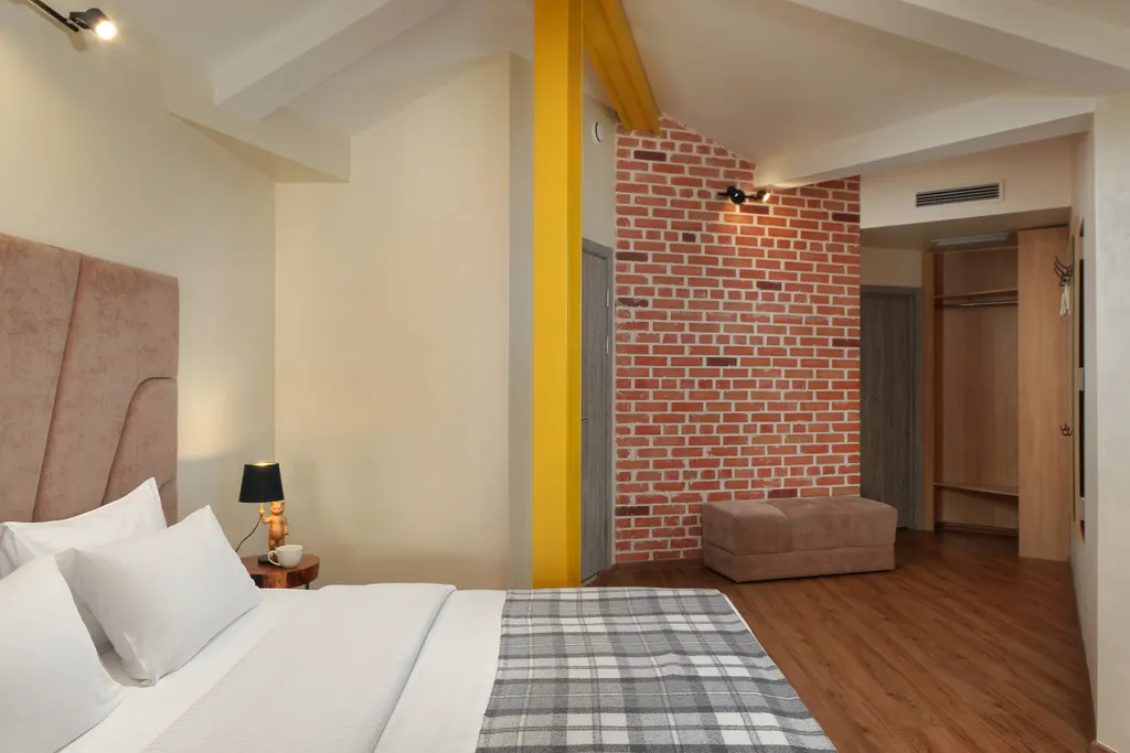 В номере есть телевизор с плоским экраном, раскладной диван, раскладное кресло-кровать, сан.узел, настенная панель для одежды с зеркалом, тумбочка, стол, 2 стула, полки, мини холодильник, чайная станция, набор посуды, халат, тапочки. Дети до 4 лет — можно без отдельного спального места.