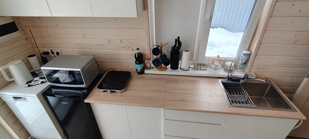 Два дома- барнхаус, в каждом комфортно размещается до четырёх человек.