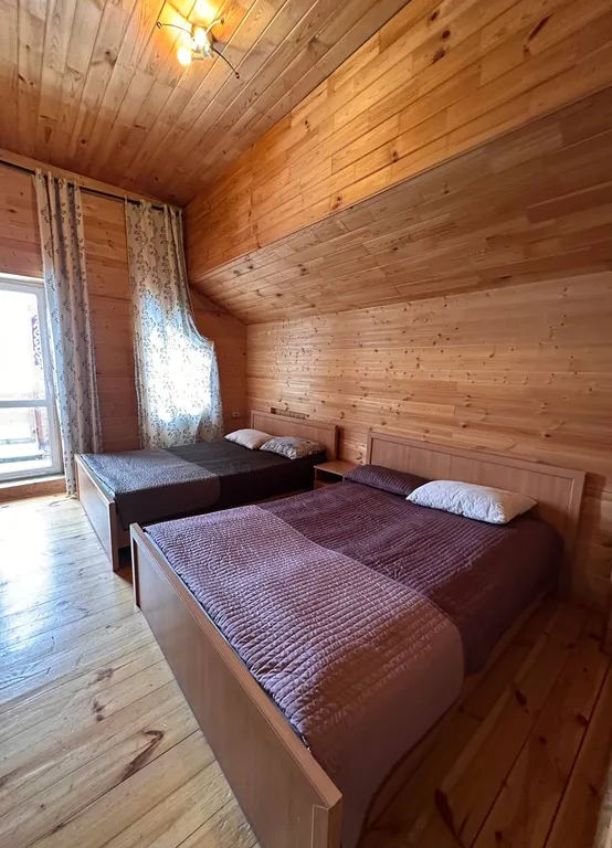 Первый этаж: гостиная и 2 спальных комнаты с удобствами в каждой.