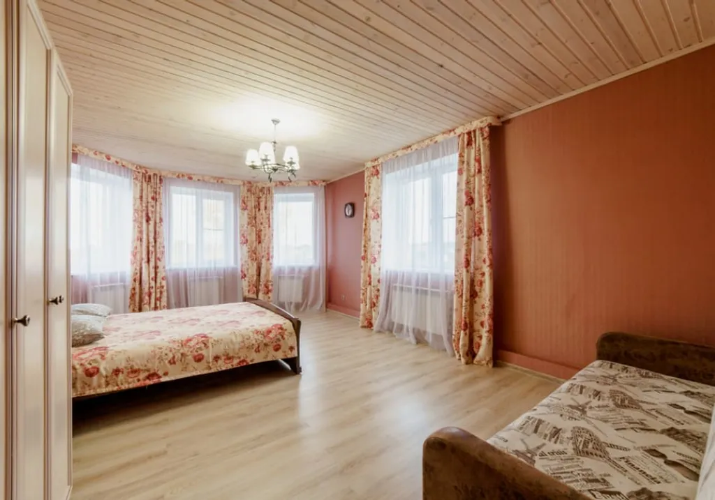 2 этаж: две спальни с двухспальными кроватями и диваном, туалетная комната