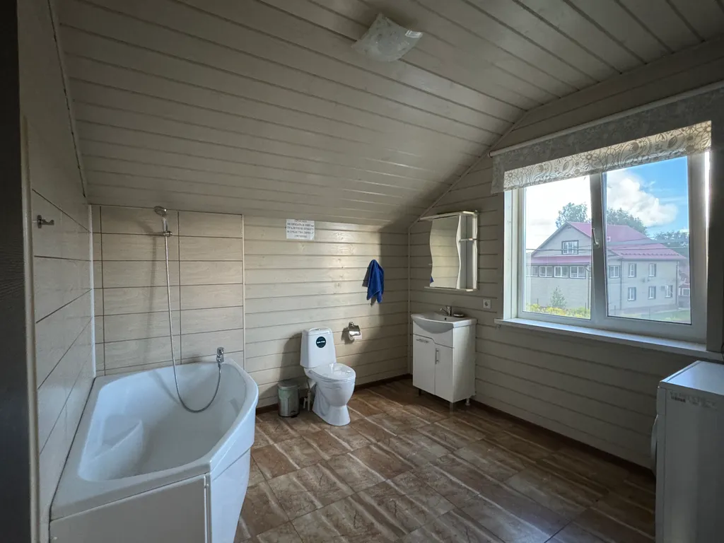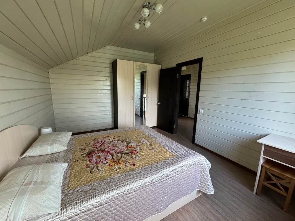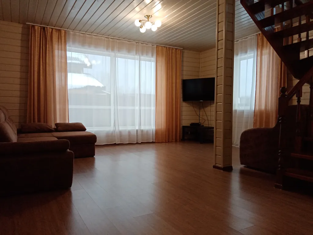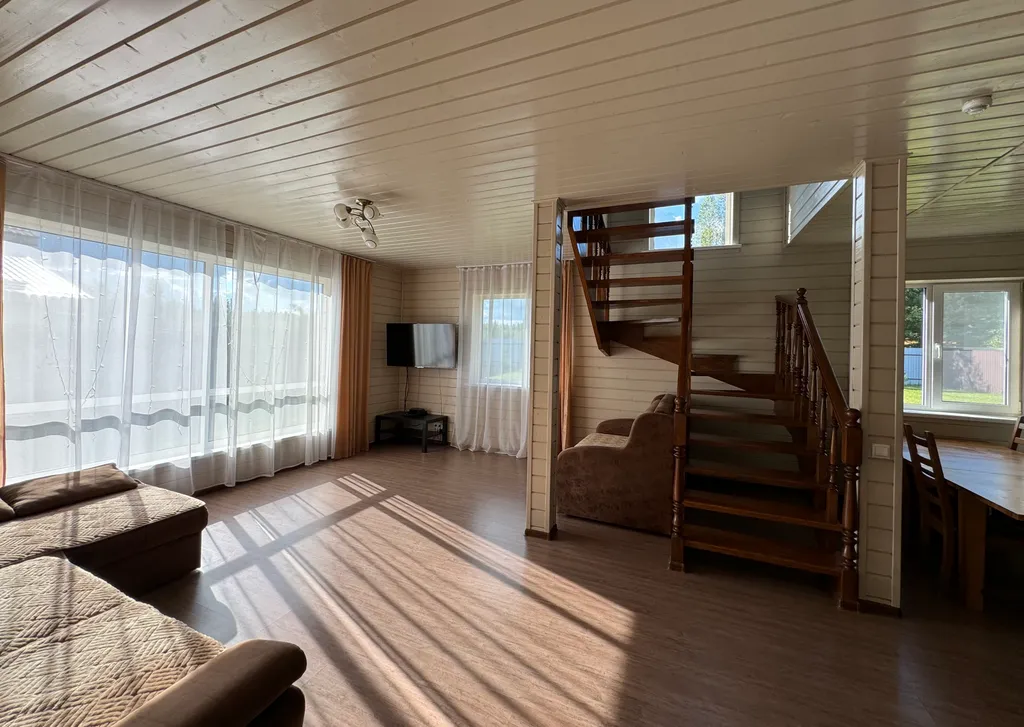 Коттедж „Бизнес": 2-этажный, 160 кв. м (брус), на участке 10 соток. Расположен на отдельной территории, оснащен парковкой на 3 автомобиля, крытым мангалом и большой меблированной верандой. На первом этаже расположены гостиный зал, кухня со всем необходимым, санузел, сауна с комнатой отдыха. На втором этаже к услугам отдыхающих три спальные комнаты и ванная комната. Несомненно, всем будет комфортно и уютно, особенно семьям с маленькими детьми, так как полы в доме с подогревом.