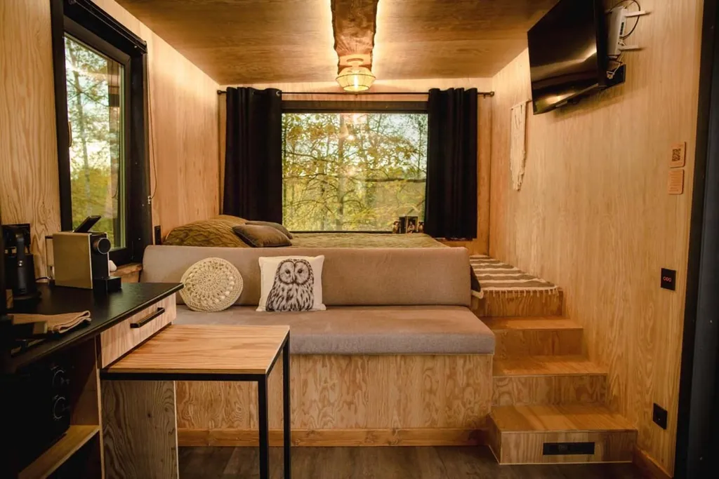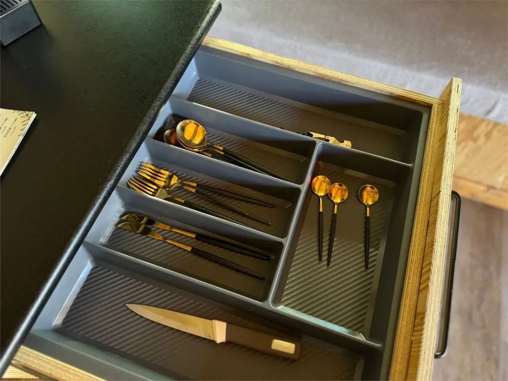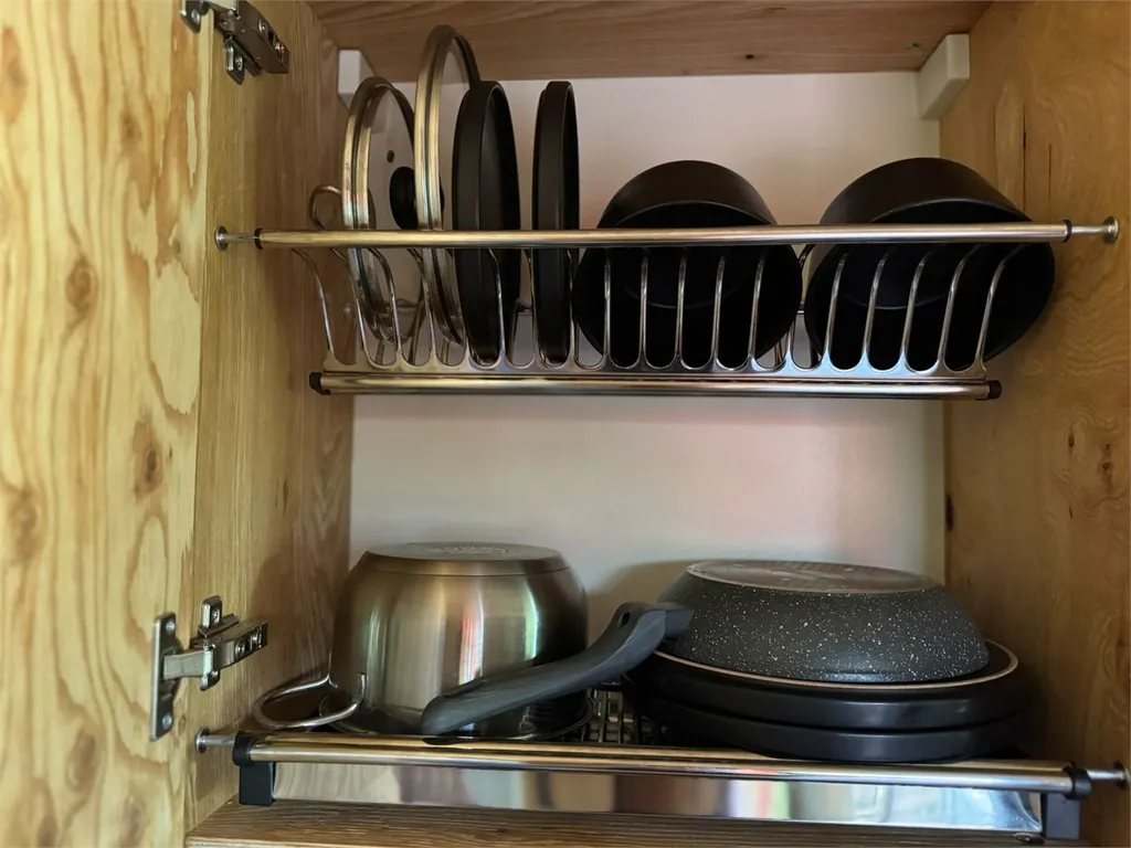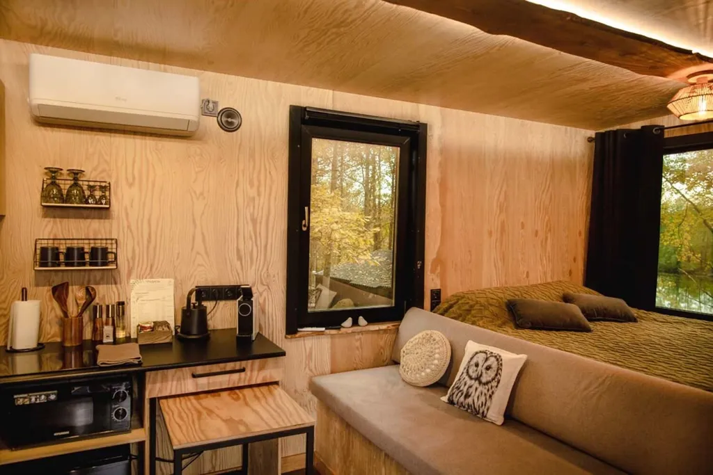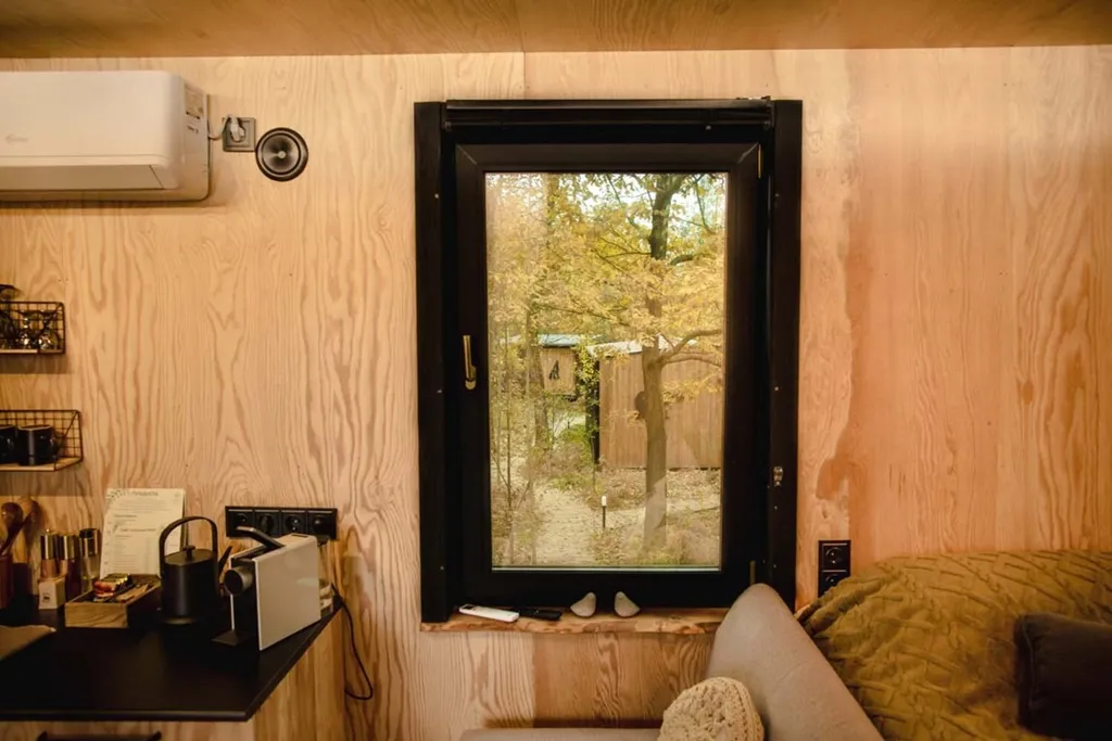 В доме полностью оборудованная кухонная зона (капсульная кофемашина (капсулы предоставляются), электрический чайник, индукционная плита, холодильник, выдвижной стол, раковина с питьевой водой, посуда для приготовления еды, столовые приборы).